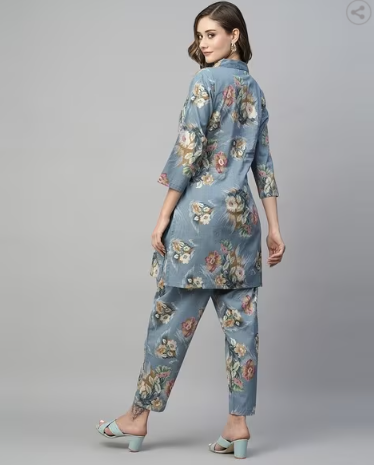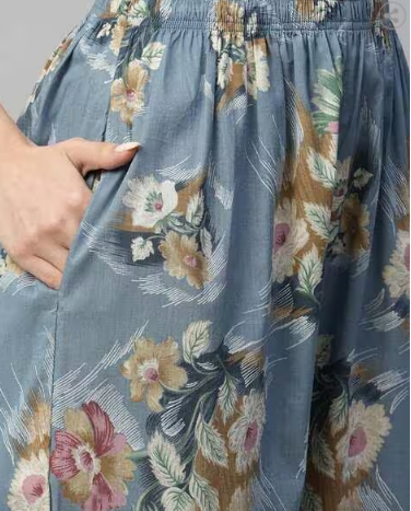 • The printed work on the fabric adds a unique and visually appealing touch to the overall outfit.