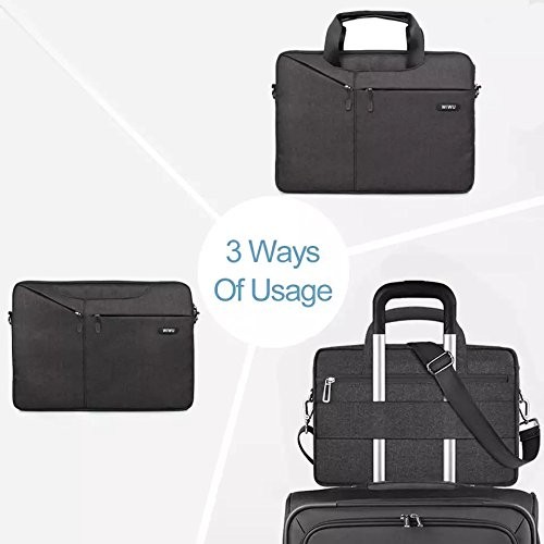 Wiwu 15.6 Inch Laptop Sleeve Case Messenger Padded Nylon Shockproof Waterproof Shoulder Bag (Black)